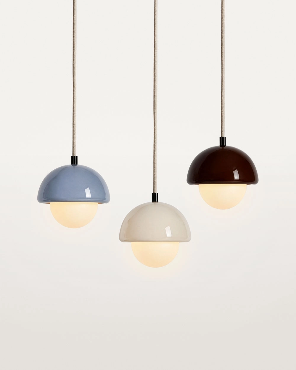 Die Keramik Pendellampe Vela lebt von ihrer ruhigen, ausgewogenen Form. Die keramische Halbkugel und der eingelassene Glasschirm verschmelzen zu einer selbstverständlichen Einheit und erzeugen ein weiches, stimmiges Licht.