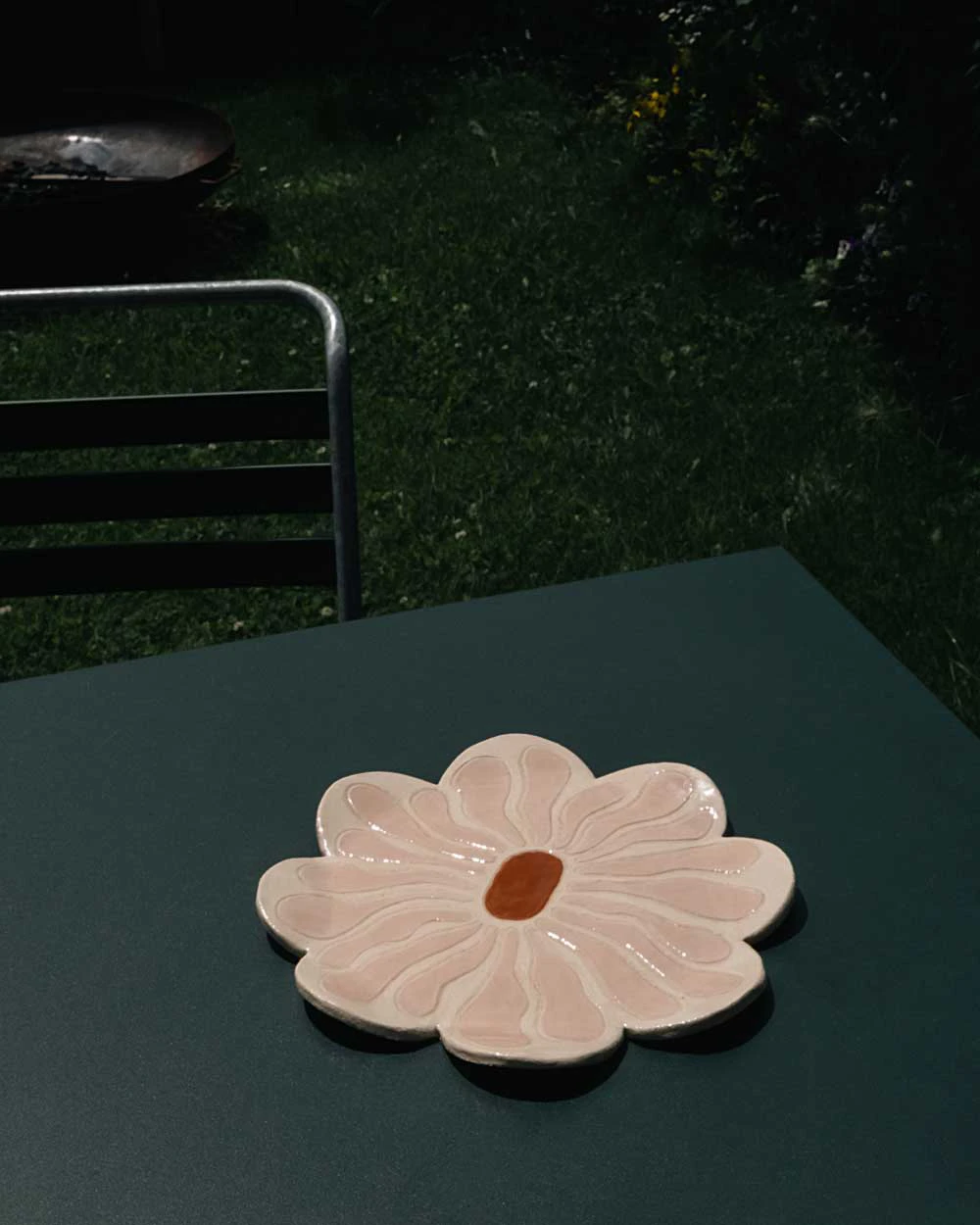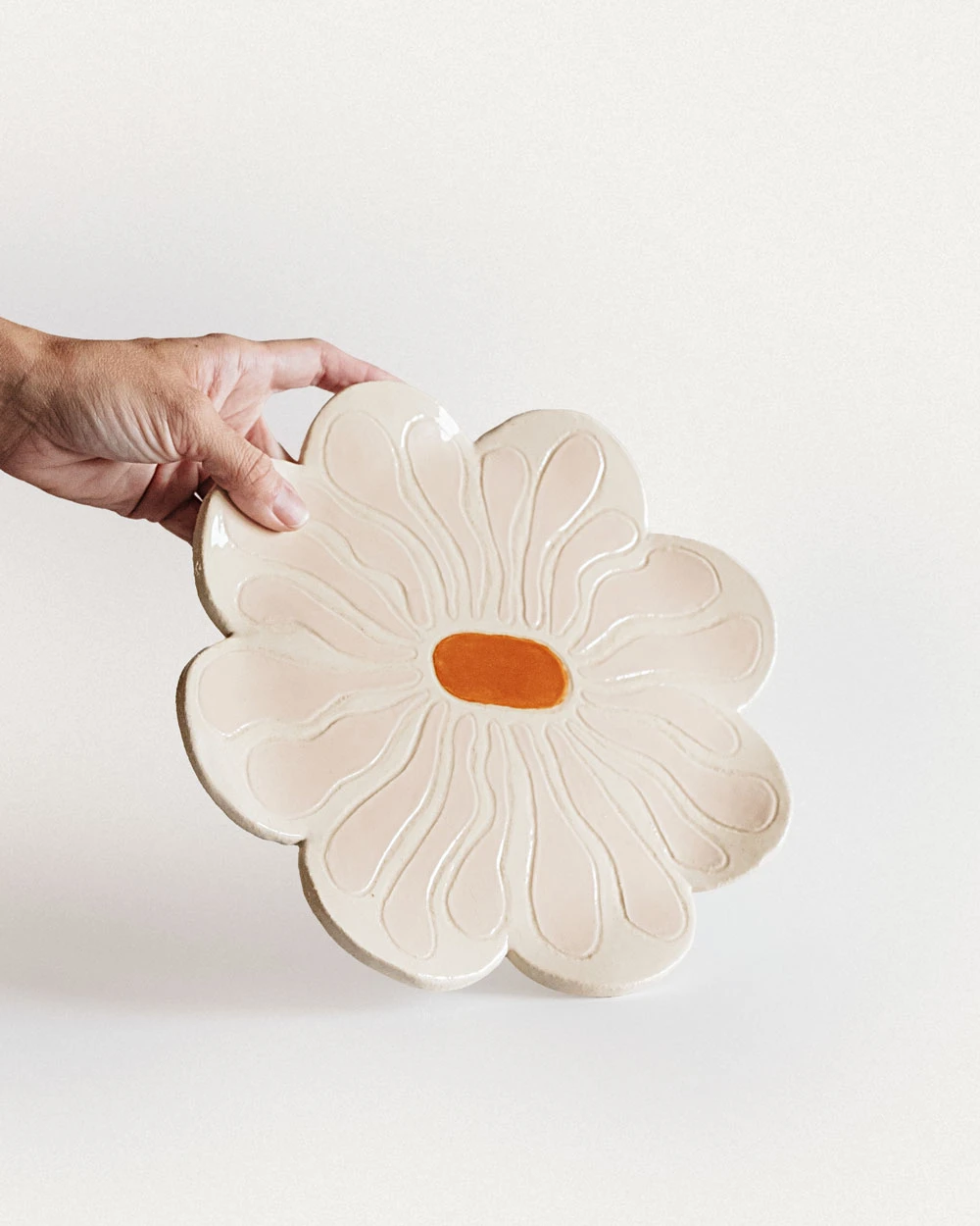 Handgemachter Servierteller mit feinem Blumenmuster – ideal für Gebäck, Früchte oder kleine Speisen.