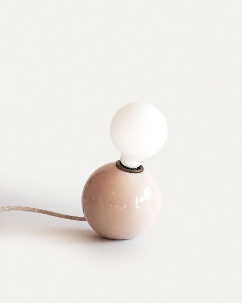 Kleine handgefertigte Keramik Tischlampe Antares in diversen Farben, mit Porzellan LED-Glühbirne und Textil-Anschlusskabel mit Kippschalter.