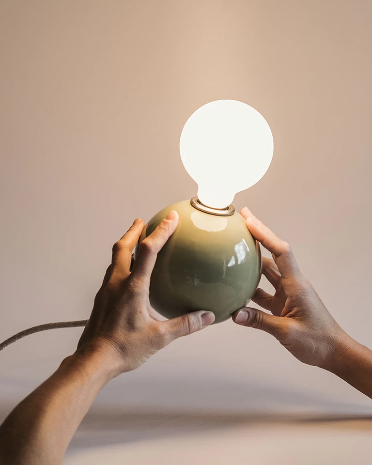 Diese Balance aus harmonischer Form und bewusster Unregelmässigkeit macht die Keramik Tischlampe Antares zu einem echten Blickfang in jedem Raum. Ihr minimalistisches Design bringt Ruhe und Eleganz, während die asymmetrisch platzierte Glühbirne einen Hauch von Verspieltheit hinzufügt. Ideal für moderne Wohnräume, die einfache Formen und zugleich kreative Akzente schätzen. Antares wird in unserem Atelier aus Ton in Gips gegossen um eine möglichst gleichmässige Kugel zu kreieren.