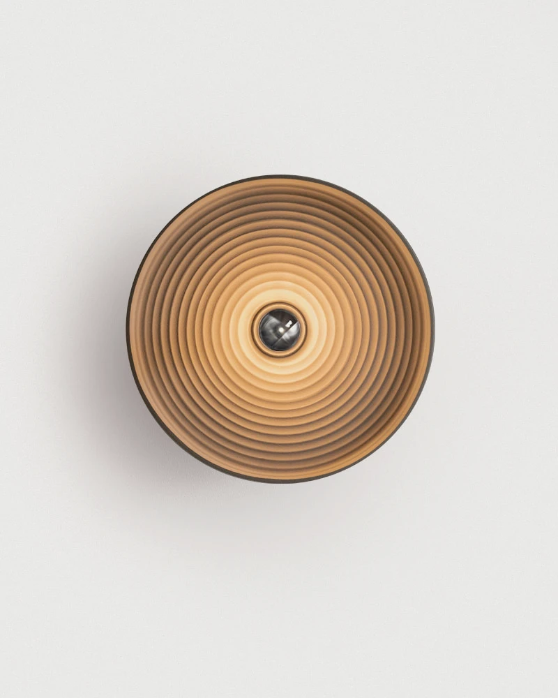 Die Keramik Wandlampe und Deckenlampe Callisto mit Rillenstruktur wird von Hand gefertigt. Für die direkte Montage an Wand und Decke.