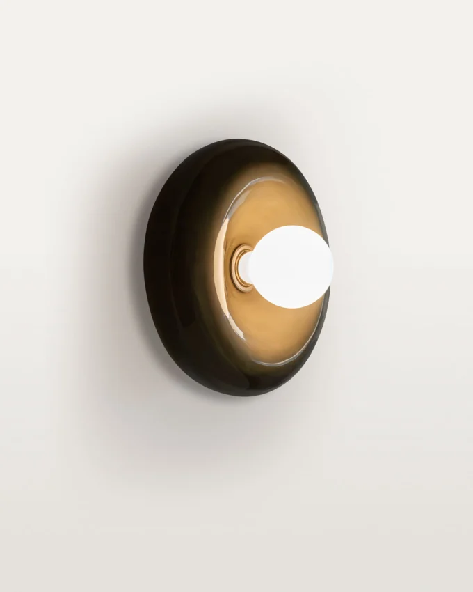 Die handgefertigte Keramik-Wandlampe Orbis mit E27 Fassung vereint präzise Formgebung mit ausgewogener Lichtwirkung. Ihre ringförmige Silhouette erzeugt ein weiches, gleichmässiges Licht, das Wände und Räume subtil inszeniert, ohne zu dominieren.