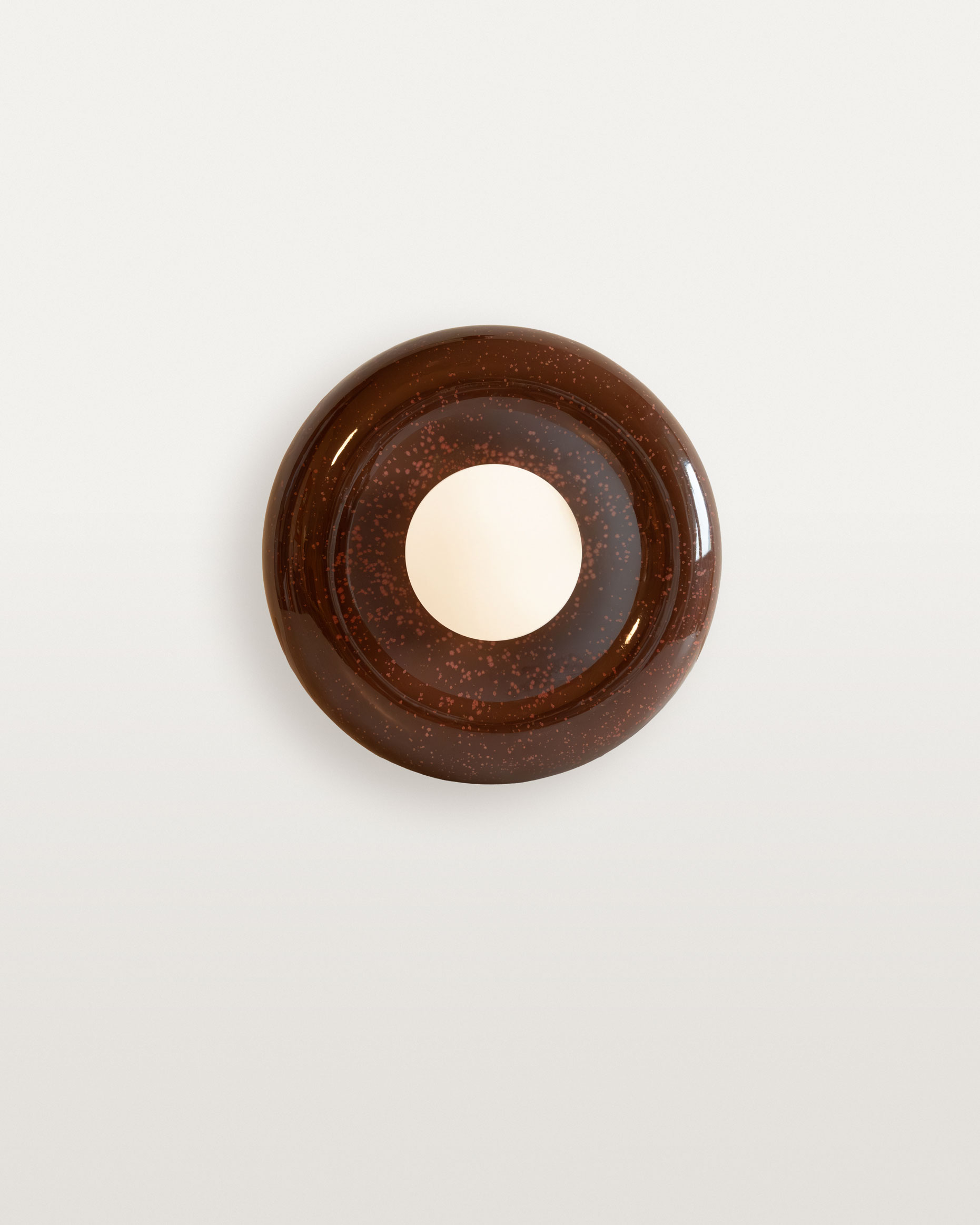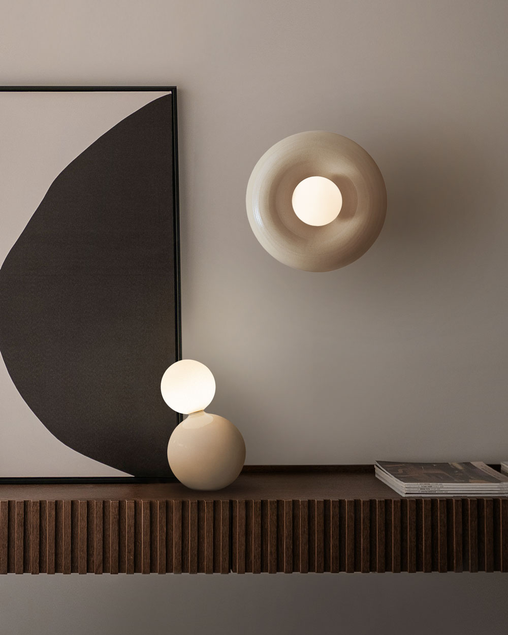 Die handgefertigte Keramik-Wandlampe Orbis vereint präzise Formgebung mit ausgewogener Lichtwirkung. Ihre ringförmige Silhouette erzeugt ein weiches, gleichmässiges Licht, das Wände und Räume subtil inszeniert, ohne zu dominieren.