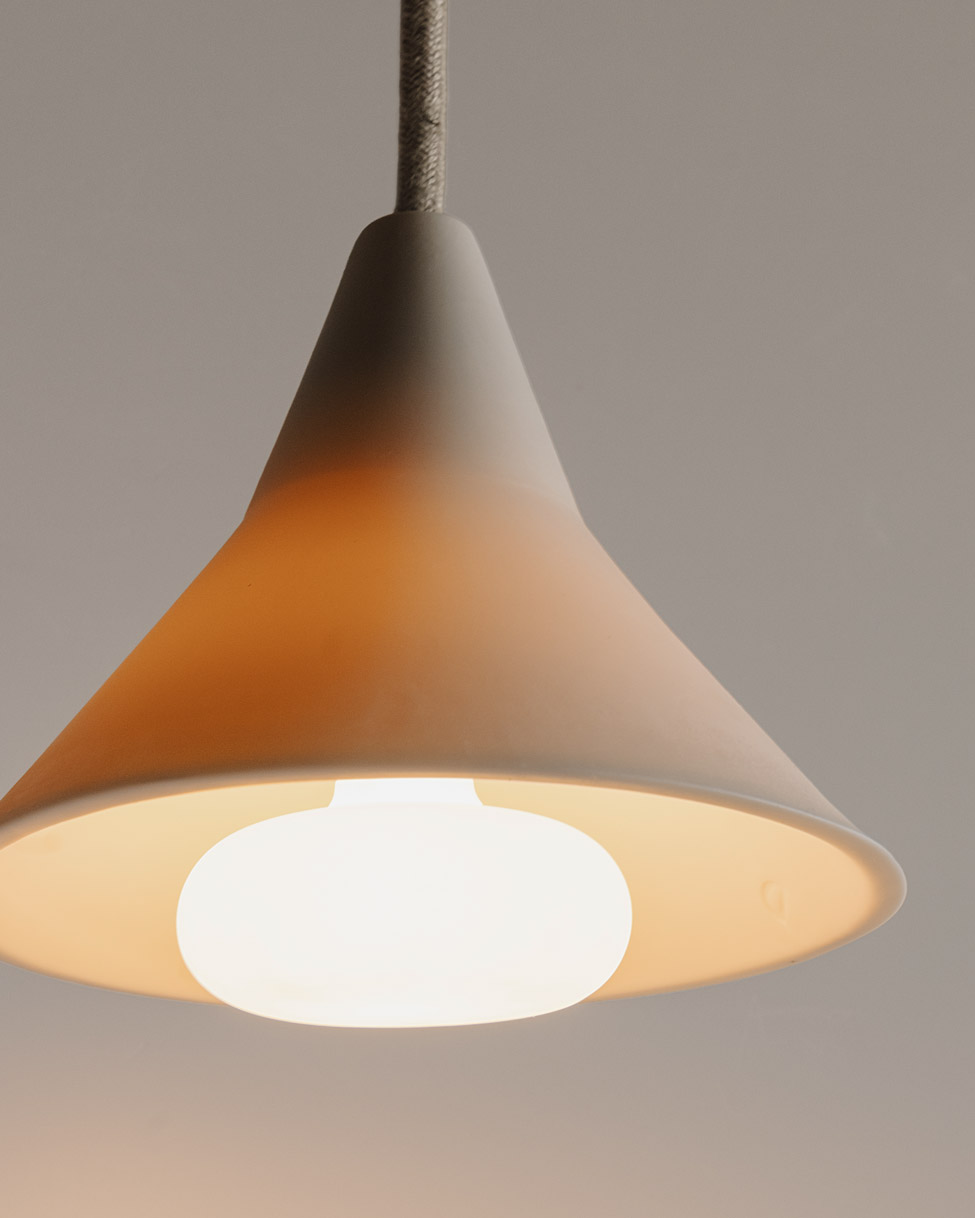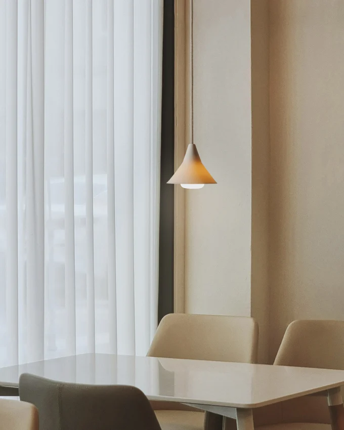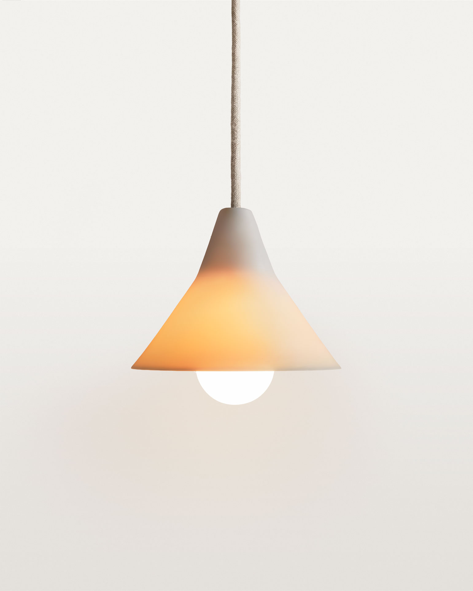 Die Pendellampe Aurea aus transluzentem Porzellan verbindet reduziertes Design mit einer einzigartigen Lichtwirkung. Durch das fein gearbeitete Porzellan scheint das Licht sanft hindurch und erzeugt eine warme, stimmungsvolle Atmosphäre – ideal für ruhige Ecken, Treppenhäuser oder über kleinen Tischen.